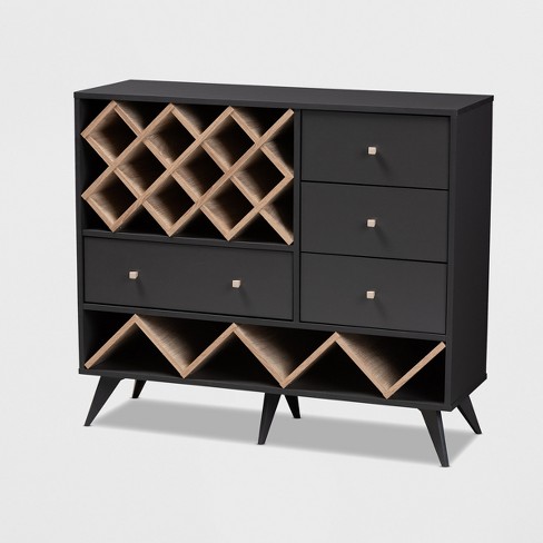 Light, natural finish accentuates the wood grain. 0 products found in wine cabinets. With a convenient drawer and metal accented storage units accommodating up to 12 bottles, you'll love storing fine wine here. Winsome burgundy wine cabinet in black. Baxton studio easton contemporary dark brown wood finish wine cabinet dark gray cabinet dart board dallas cowboys.